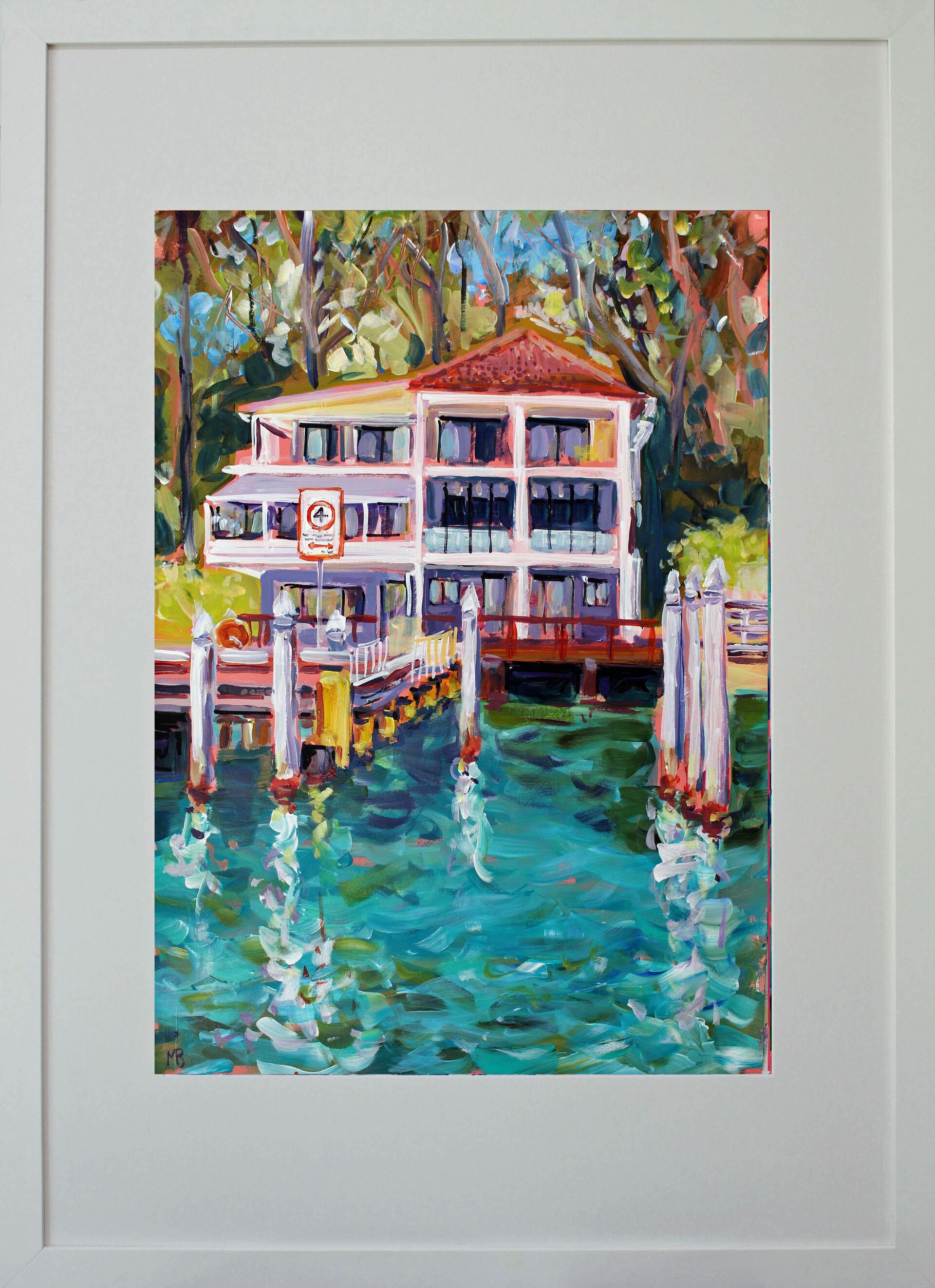 Artwork is framed in a white timber frame.On the back of the frame, hooks and cord are fixed, so ready for hanging on the wall