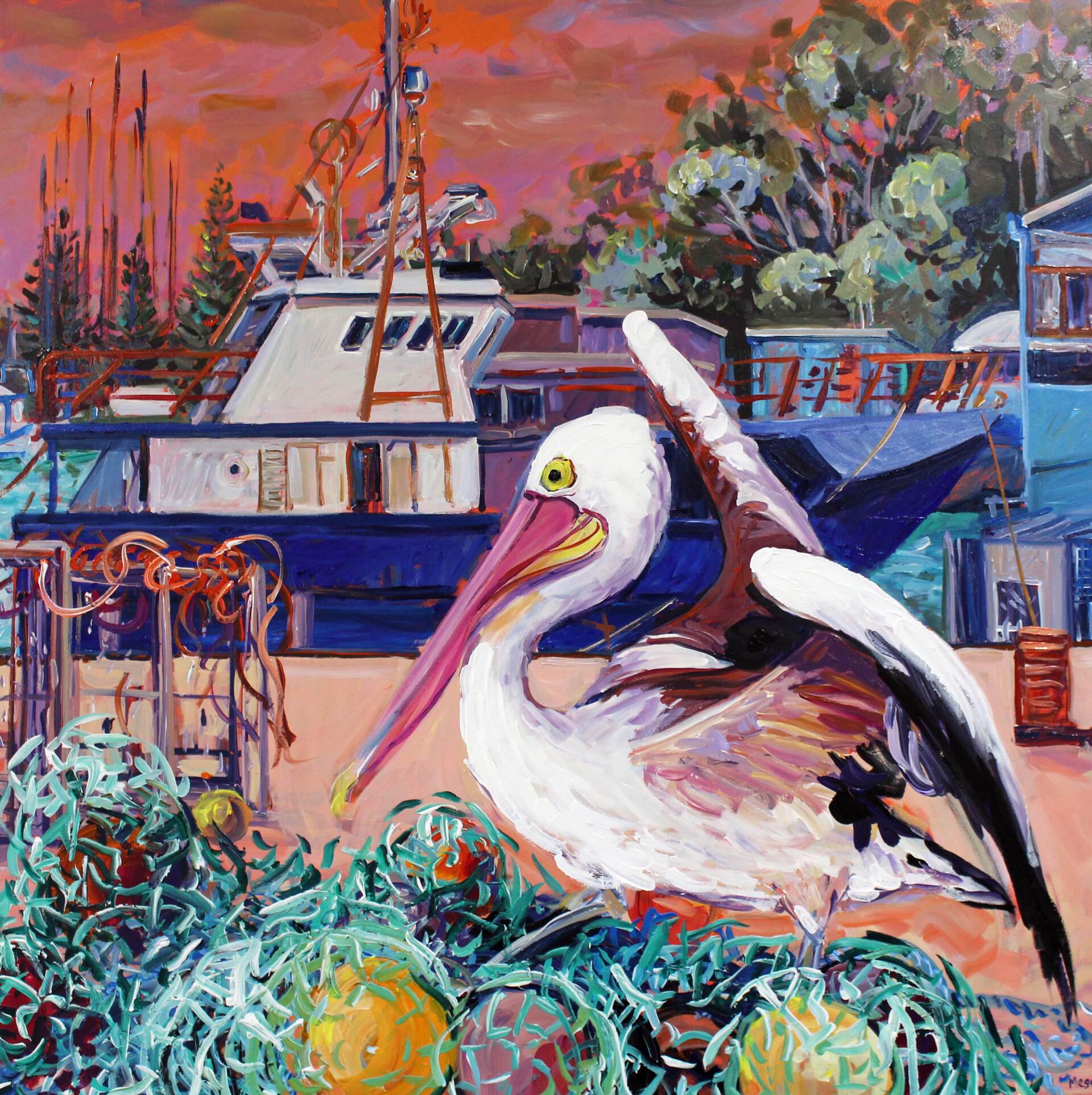 My life is full of fishing boats, pelicans, the ocean, sun rises and sunsets. Port Stephens NSW is where I live and take great joy in celebrating small moments of time; i.e. hanging about with the pelicans on our local wharf and rock-wall.