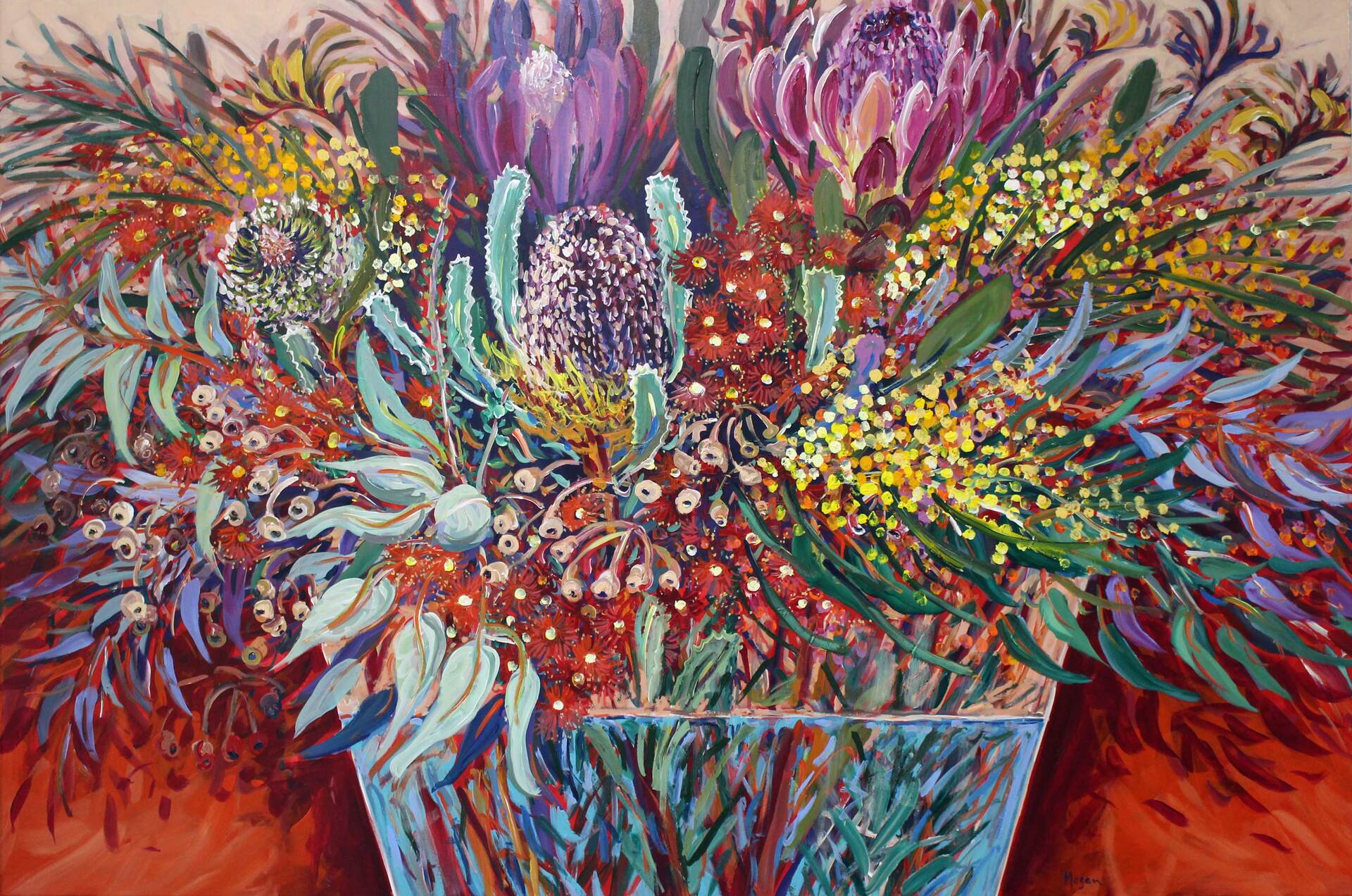 On the back of the painting, D-hooks and cord are fixed, so ready for hanging on the wall